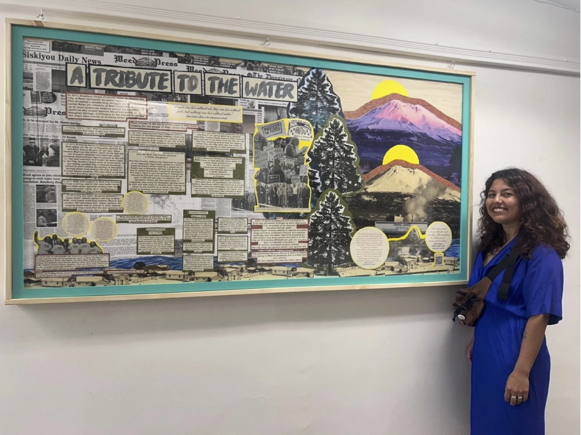 Following the conclusion of the successful campaign to save Weed’s water and the end of the court challenges regarding the SLAPP suit against WCWC and nine individuals, WCWC closed out its activities with a community celebration and unveiling of a history display at the Weed Historic Lumber Town Museum on May 28, 2025. The display, titled, “A Tribute to Water,” recounts the one-hundred-year history of the City’s utilization of Beaughan Springs water including the story of the successful, decade-long struggle against the privatization of that important municipal water source. The display was commissioned and donated to the Museum by WCWC and created by local artist, Brenda Montaño.